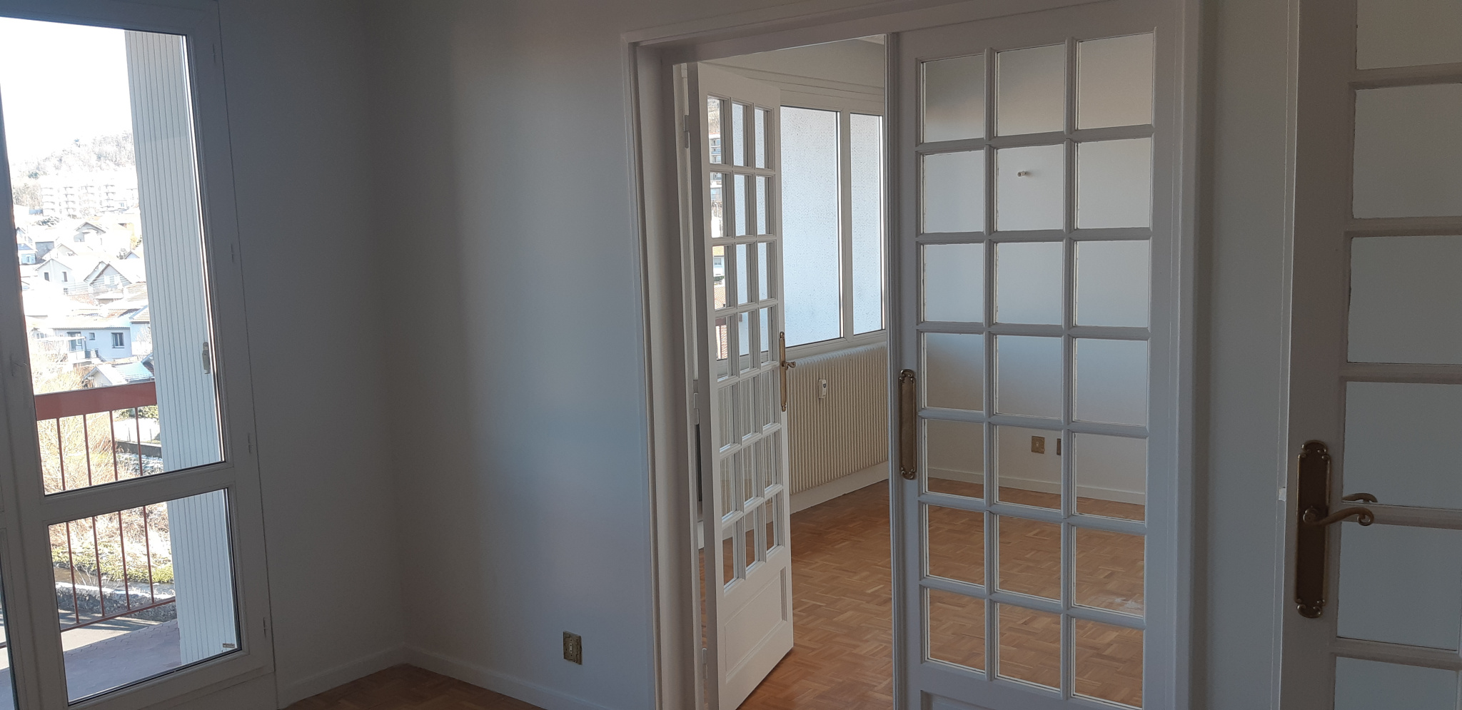 Le Chantilly, T3 avec ascenseur, entrée avec placards, cuisine séparée, séjour sur balcon, deux chambres, salle de bains, wc, cave