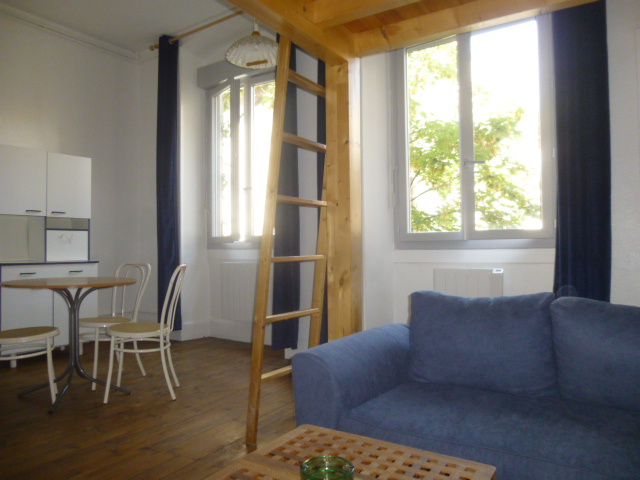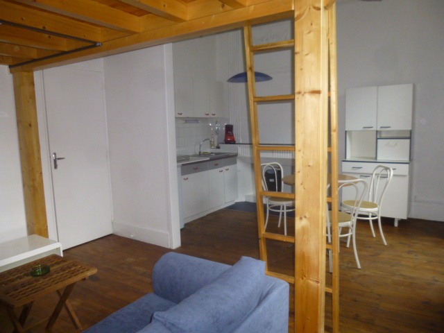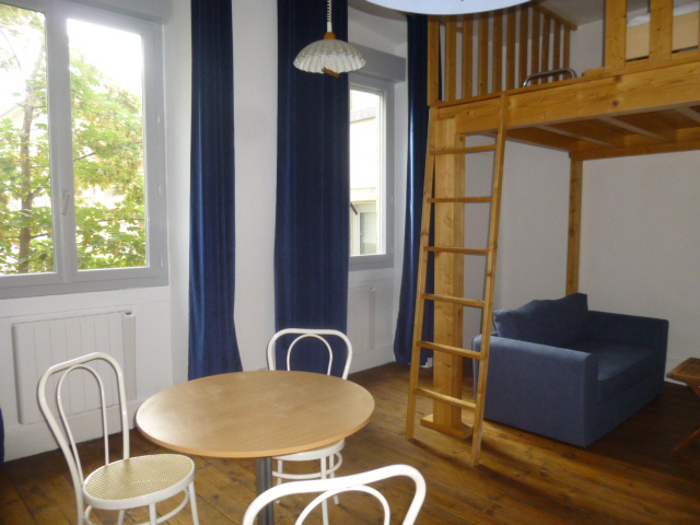 Proche des écoles, en plein centre ville, studio meublé de 28 m2, très lumineux, comprenant : hall, séjour/cuisine équipée, salle d'eau/wc + chambre en mezzanine, exposition Est, chauffage individuel électrique, libre début mai 2026